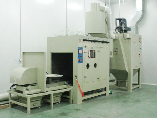 工作方式:产品自动进出,自动旋转,自动喷砂