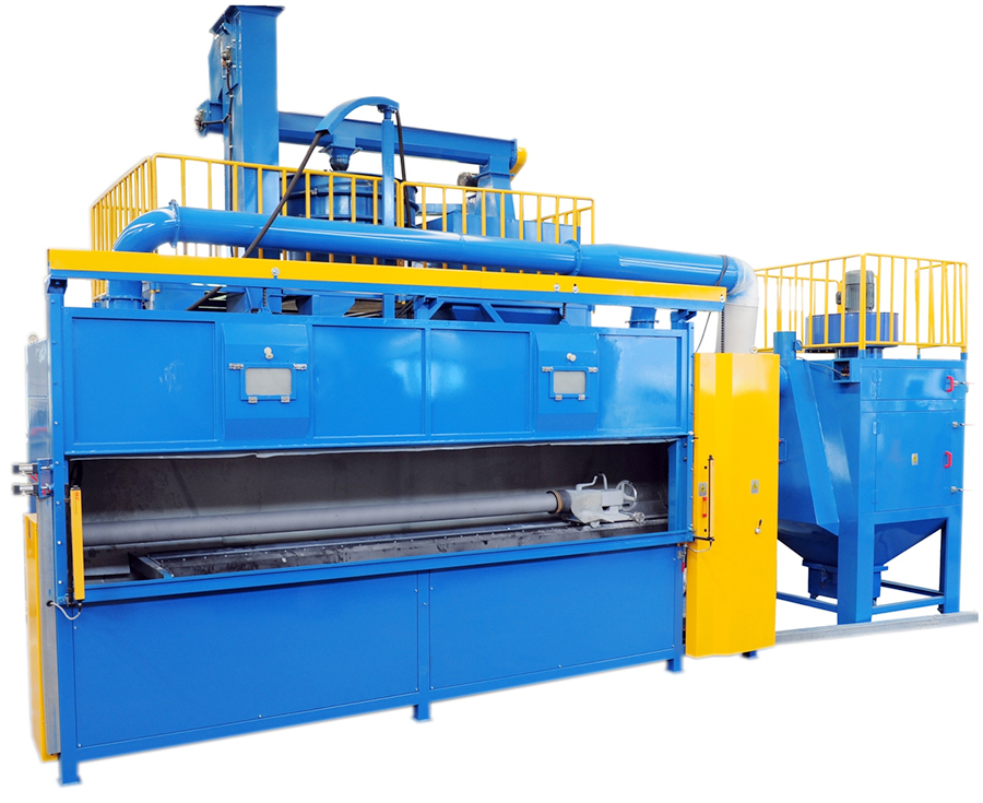 该自动喷砂机皮用于各黄金属图管的表面清理或相境,其目的增加金属图管表面的粗稳度和清洁度,提高各类金属圆管的美观,或者增强各类金属圆管和涂层之间的附着力。