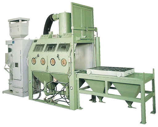 4、出料机构后配有自动输送线,可将喷砂加工后的工件,自动传送到防锈液中;