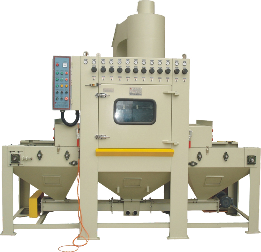 适合于平板类、盘类、四方体、型材及其他异形工件的喷砂加工,例如:平面不锈钢板材、普通钢板、玻璃钢板、石材、不粘锅、烤盘、多士炉、电脑机箱、功能DVD面板、笔记本、电脑主机板、电熨斗底板、装饰件、标牌徽章、通讯器材、铝板材、型材及其它异形件等。